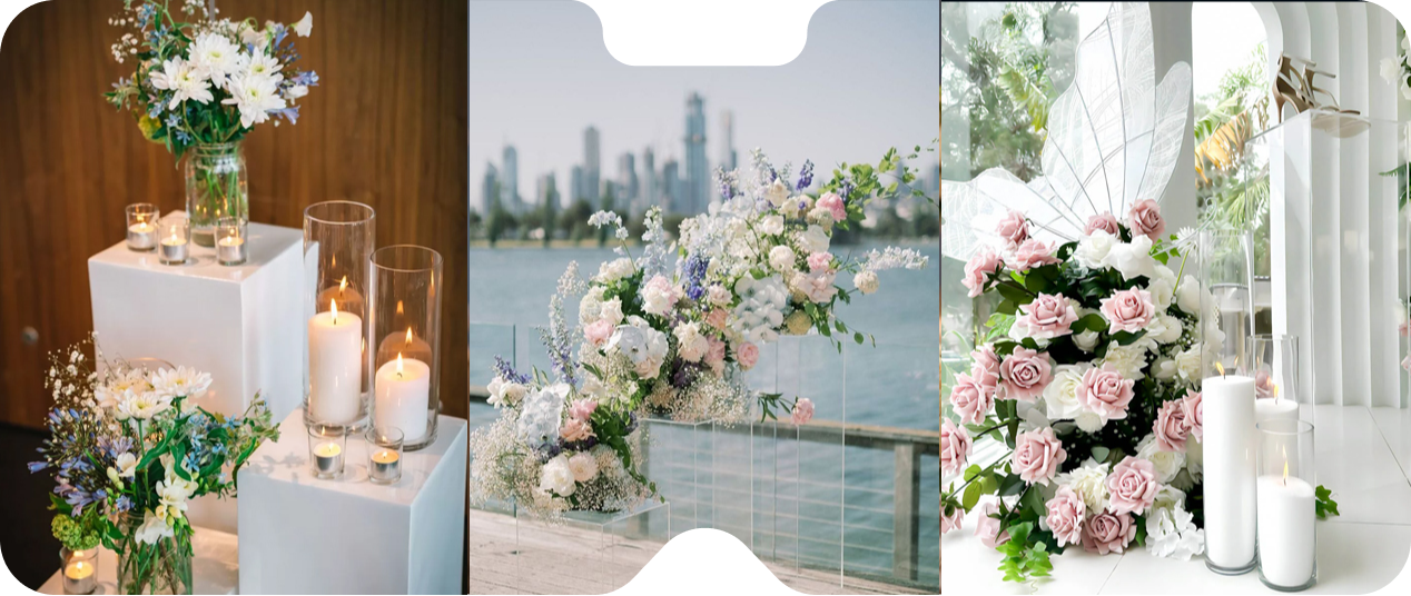 Showcase your decor, desserts, or centerpieces with our elegant plinths. Available in various shapes, sizes, and colors, our plinths add sophistication and focus to your event styling.