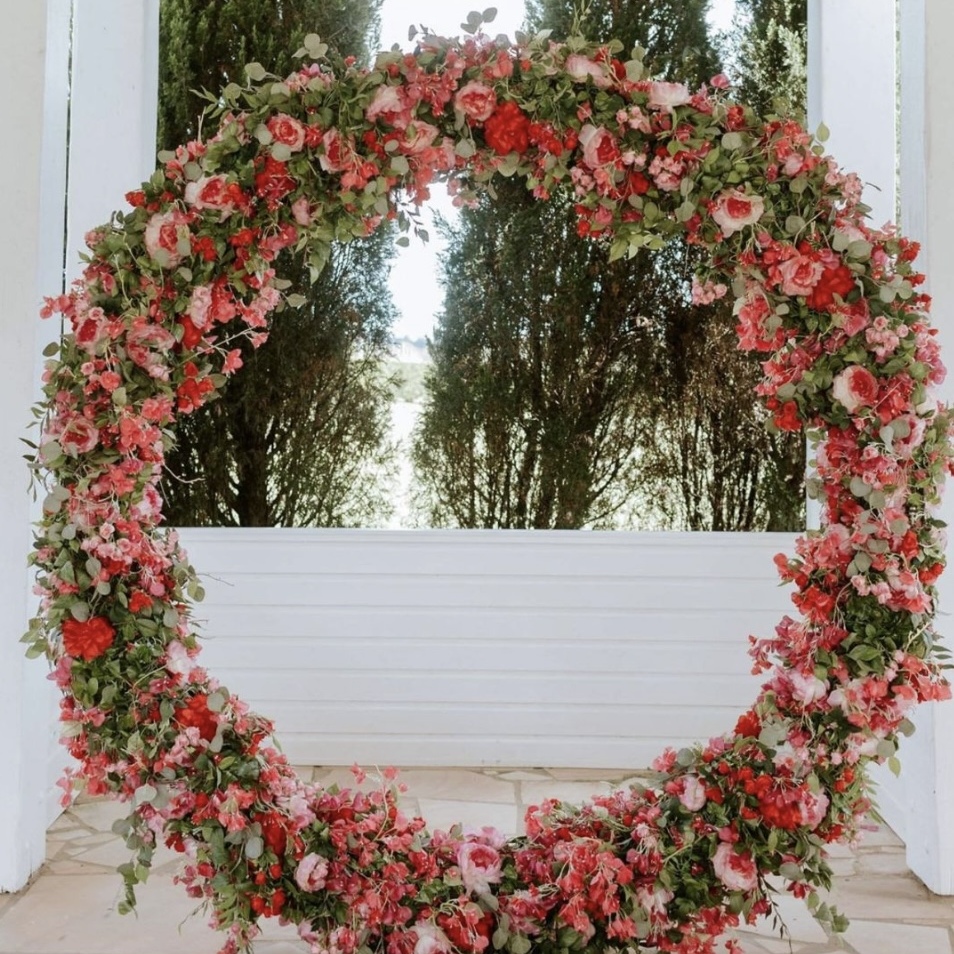 A Bougainvillea Flower Arbour is a vibrant and eye-catching decorative structure draped with vivid bougainvillea blooms. Perfect for outdoor events, weddings, and tropical-themed celebrations, it brings a burst of color and natural charm, creating a picturesque setting for entrances, photo ops, or ceremony spots.